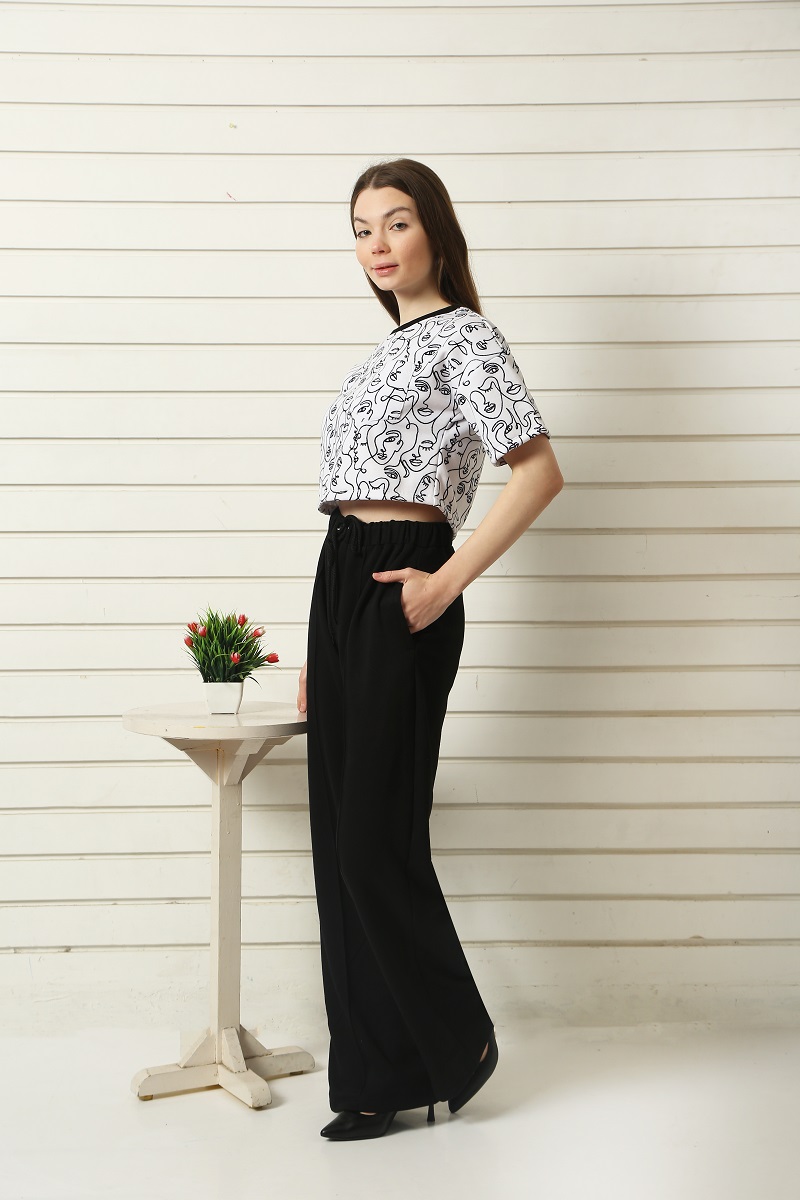 We have no doubt this crop tee with flare pant will be your go to glam piece with its lightweight cotton Jersey material, a crew neckline, loose half sleeve, High waist trouser, 2 side pocket, a flare bottom and a relaxed silhouette!